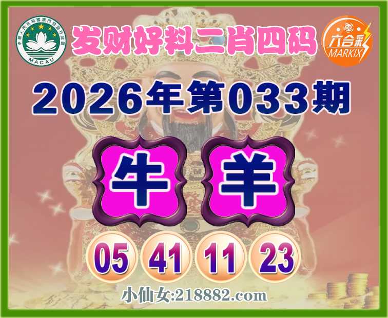 033期:【发财好料】 👩‍🌾二肖四码👩‍🌾【羊】【05.41.11.23】开:牛41
