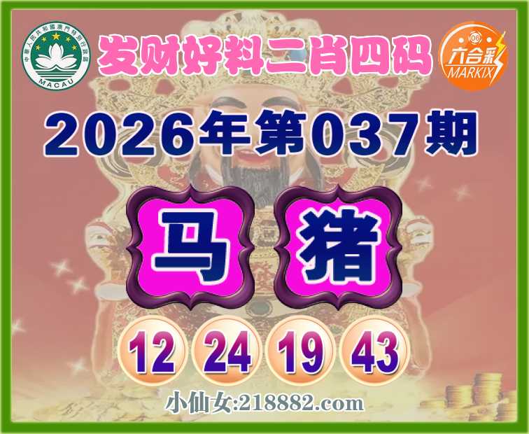 037期:【发财好料】 👩‍🌾二肖四码👩‍🌾【马】【12.24.19.43】开:猪43