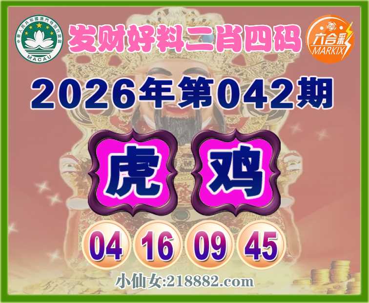 042期:【发财好料】 👩‍🌾二肖四码👩‍🌾【鸡】【04.16.09.45】开:虎16