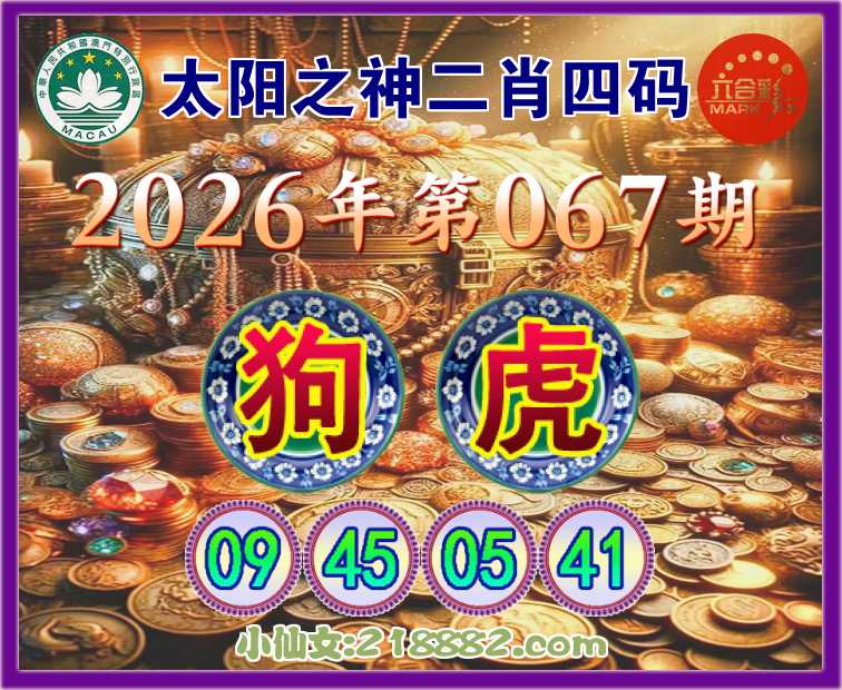 067期:《太阳之神》 😜二肖四码😜【狗】【09.45.05.41】开:虎05
