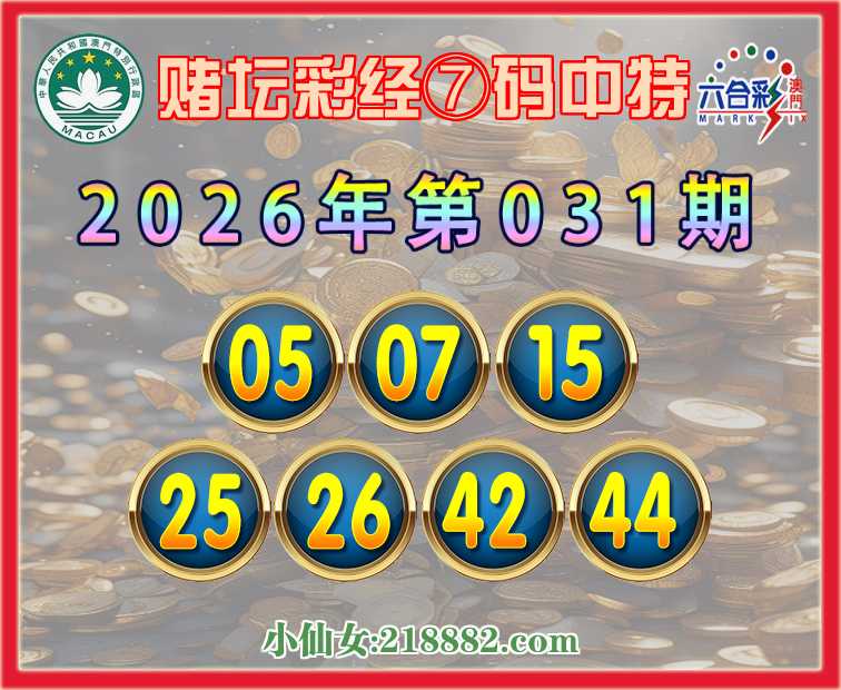 031期:《赌坛彩经》 📸⑦码中特📸【05.07.15.25.26.42.44】开:26
