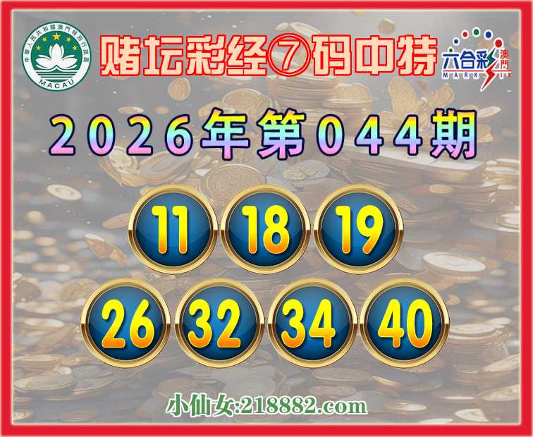 044期:《赌坛彩经》 📸⑦码中特📸【11.18.19.26.32.34.40】开:19