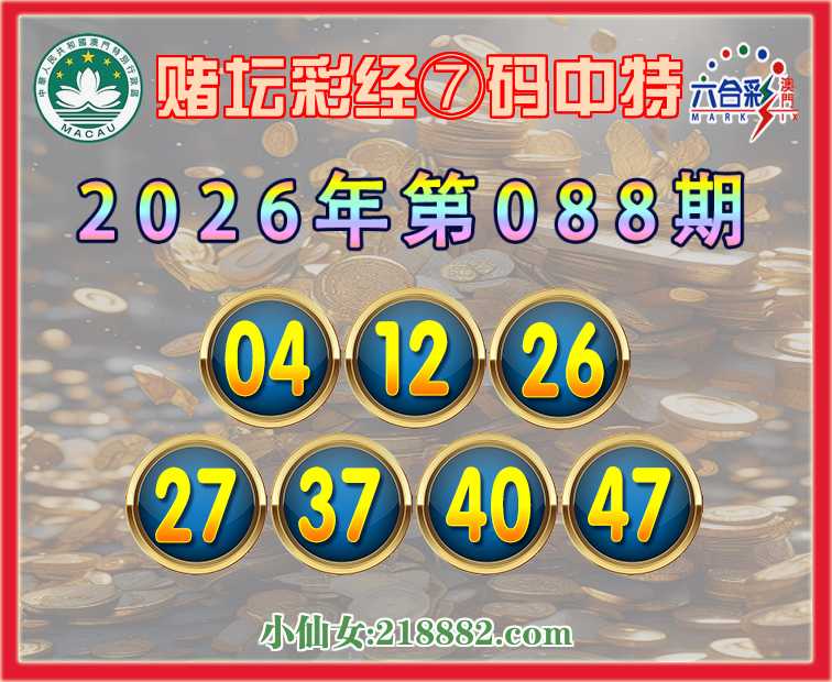 088期:《赌坛彩经》 📸⑦码中特📸【04.12.26.27.37.40.47】开:27
