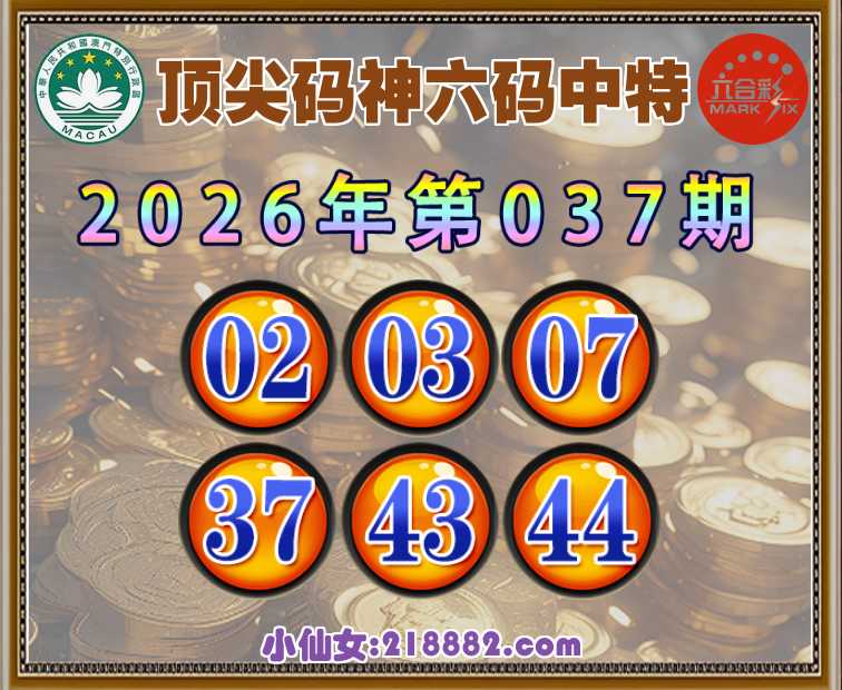 037期: 🌳『顶尖码神』 🌳六码中特🌳【02.03.07.37.43.44】开:43