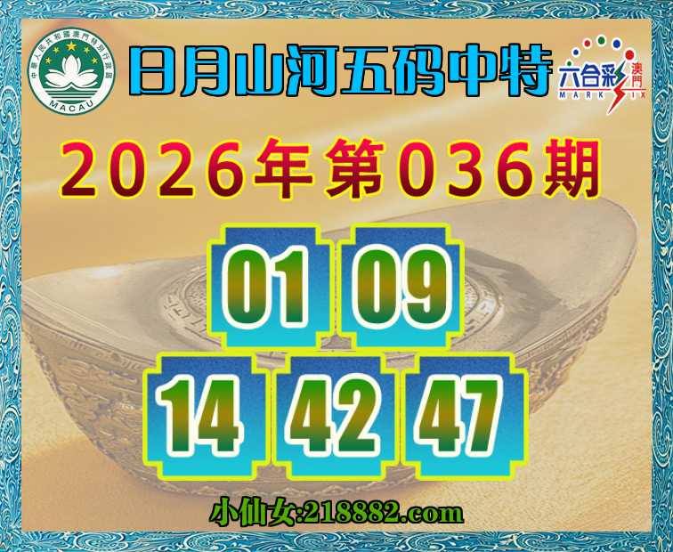 036期:《日月山河》 ♠️五码中特♠️【01.09.14.42.47】开:01