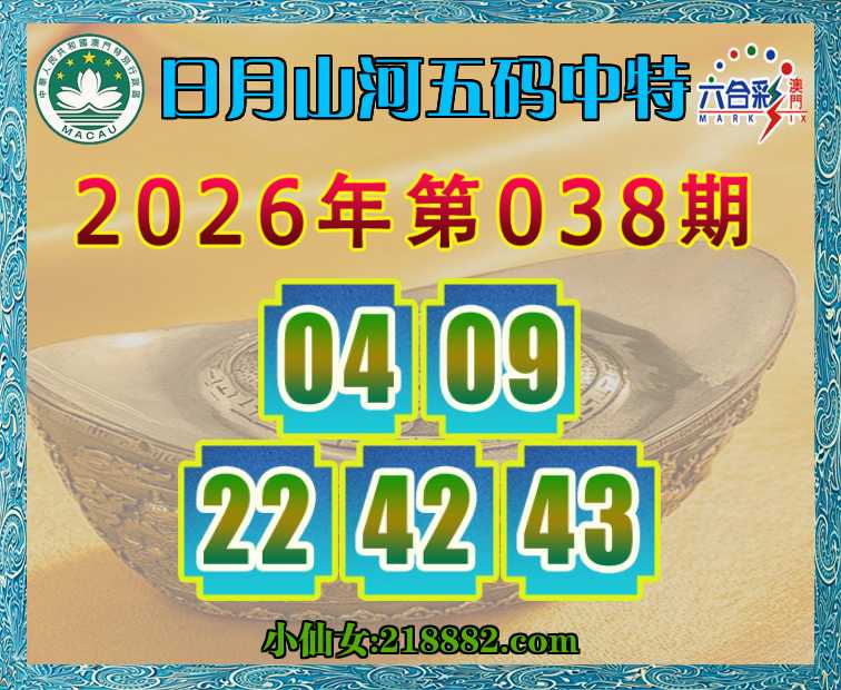 038期:《日月山河》 ♠️五码中特♠️【04.09.22.42.43】开:42
