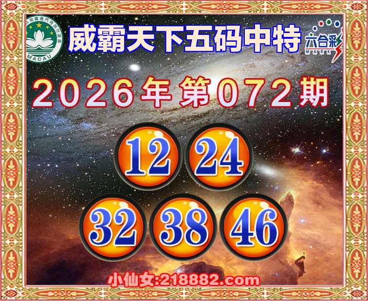 072期:『威霸天下』 ♥️五码中特♥️【12.24.32.38.46】开:46